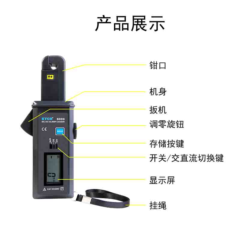 ETCR6000直流/交流鉗形漏電流表又稱(chēng)弱電流鉗表,用于測(cè)量交流/直流電流、漏電流。儀表采用霍爾感應(yīng)及數(shù)字集成技術(shù),非接觸測(cè)量,無(wú)需斷開(kāi)線路,快速、安全、可靠。廣泛適用于電信機(jī)房電流檢測(cè)、電力檢修、氣象、油田檢測(cè)等行業(yè)。
