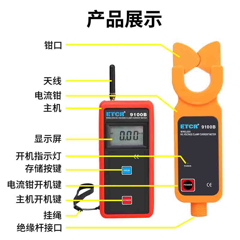 ETCR9100B無線高低壓鉗形電流表又稱架空線路負載測試儀,高壓負載測試儀、高空電流測試儀、高壓電流遙測儀,用于測量架空線路高低壓電流。儀表由專用鉗形電流表配高壓絕緣桿組成。若不使用絕緣桿,還可以當作高精度低壓鉗形電流表使用。廣泛應用于變電站﹑發(fā)電廠﹑工礦企業(yè)以及檢測站﹑電工維修部門進行電流檢測和野外電工作業(yè)等。