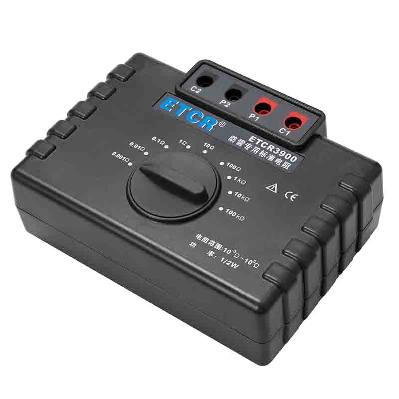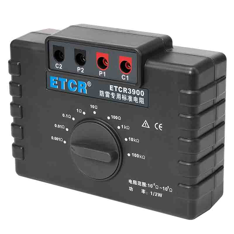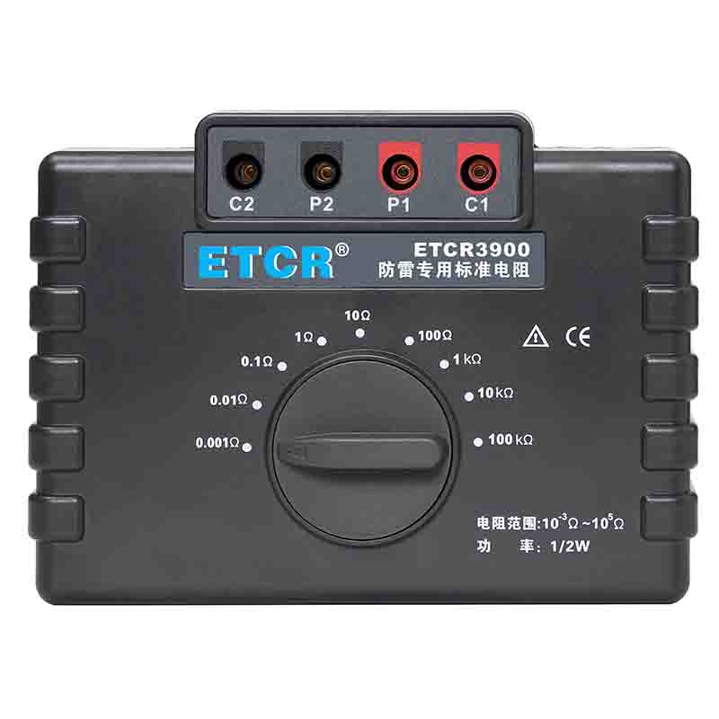 ETCR3900防雷專用標(biāo)準(zhǔn)電阻由9個1/2W高精度線繞電阻組成,校準(zhǔn)電阻時直接換擋測試,無需更換測試線,性能穩(wěn)定結(jié)構(gòu)堅固,校準(zhǔn)測試特別方便。采用的高精度線繞電阻最高精度達(dá)0.05%,其阻值包括1mΩ、10mΩ、100mΩ、1Ω、10Ω、100Ω、1kΩ、100kΩ完全滿足國家氣象局38號令【雷電防護(hù)裝置檢測資質(zhì)管理辦法】中規(guī)定的10-3~105Ω范圍。本標(biāo)準(zhǔn)電阻主要用于接地電阻測試儀、等電位測試儀等儀器的校準(zhǔn)。廣泛應(yīng)用于建筑質(zhì)檢站、監(jiān)理公司、建筑施工單位、防雷公司、電力部門等。