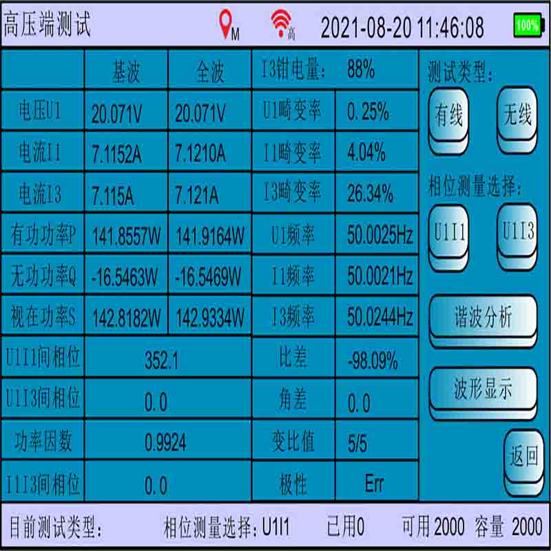 2、自動計算出電流互感器變比值、變比誤差和角差。